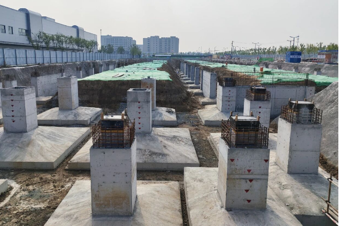 近日,由公司承建的北京亦庄新能源汽车核心零部件创新基地二期项目又有新进展。其中,1号、2号、3号厂房正进行基础结构施工,生活配套楼已完成“正负零”施工节点,正进行二层结构施工,预计2026年10月完工。